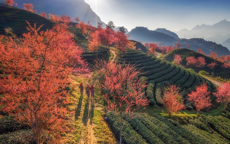 - Mùa xuân (Tháng 2 – tháng 5): Sapa khoác lên mình chiếc áo rực rỡ sắc hoa. Đào, mận, mai anh đào đua nhau khoe sắc, điểm tô cho bức tranh thiên nhiên thêm lung linh, huyền ảo.